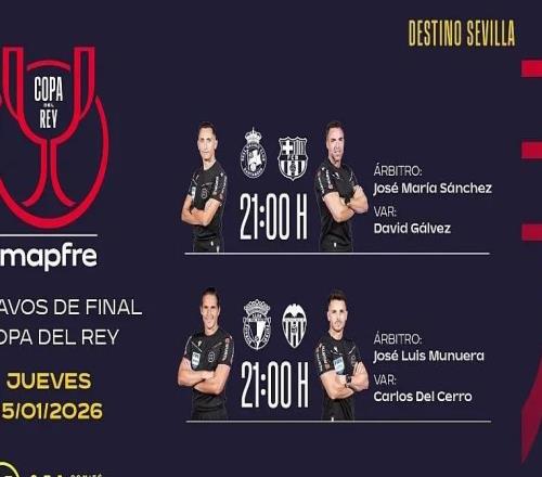 西班牙足协官方公布了国王杯1/8决赛最后一个比赛日的裁判安排,何塞-桑切斯将执法巴萨客战桑坦德竞技。当地时间周四国王杯比赛裁判安排1月16日4:00 桑坦德竞技vs巴塞罗那 主